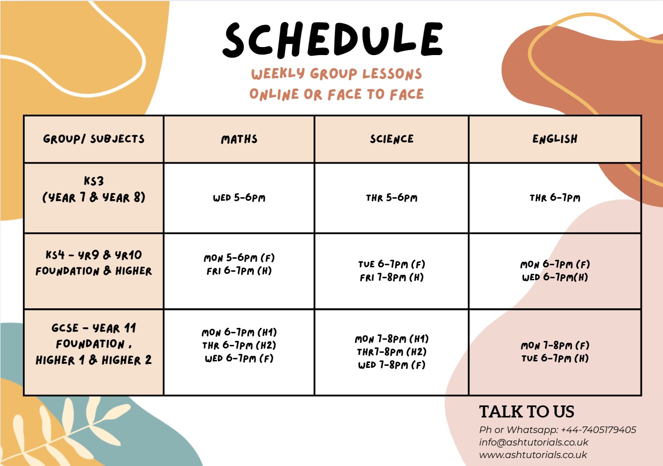 Each subject includes a 1-hour session per week, delivered either online or face-to-face at our centre.